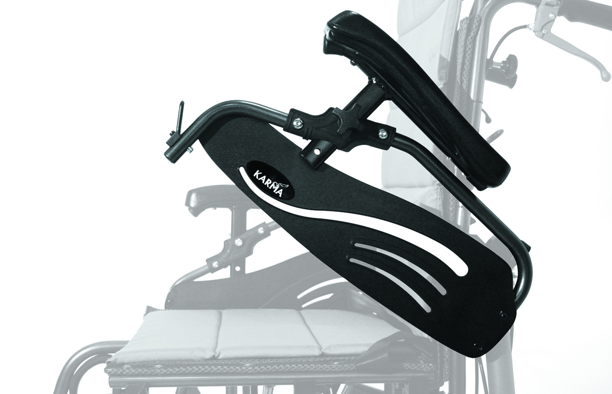 Equipada com estofo do encosto e assento em tecido respirável e com protecção antimicrobiana; apoios de braços rebatível e ajustável em altura; patins swing-away; rodas anti-volteio; rodas traseiras de 14 pol. ou 20 pol.; travão de acompanhante.