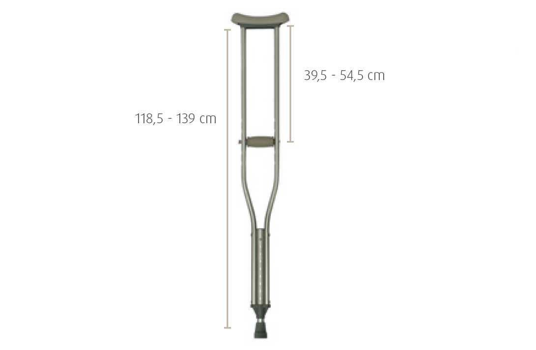 Muleta de alumínio com suporte de espuma no apoio axial. Punho regulável.